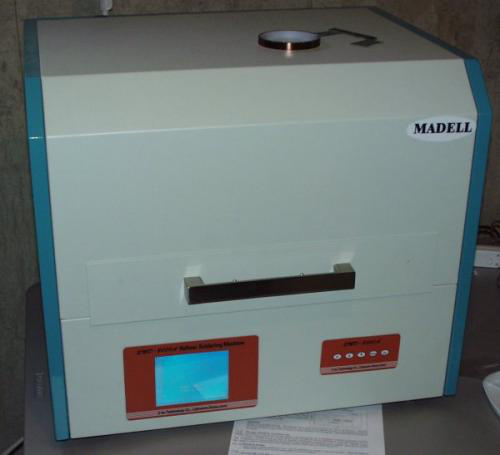 正如你所看到的,托盤非常大。 烤箱內置風扇用于冷卻。 元件是紅外線,加熱速度非常快,可以非常接近地監測溫度。 纖細的棕色是溫度傳感器,應該貼在每個回流的PCB上 - 這是我們從未做過的事情。