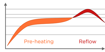 浸泡 - 此階段的目的是確保所有組件在進(jìn)入回流階段之前達(dá)到所需溫度。 取決于組件的“質(zhì)量差異”和組件類型,浸泡通常持續(xù)60到120秒。 浸泡階段傳熱效率越高,需要的時間就越少。