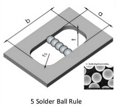 有一個(gè)'5球規(guī)則',理想情況下最少5個(gè)焊料粒子應(yīng)該跨越最小孔徑的寬度。